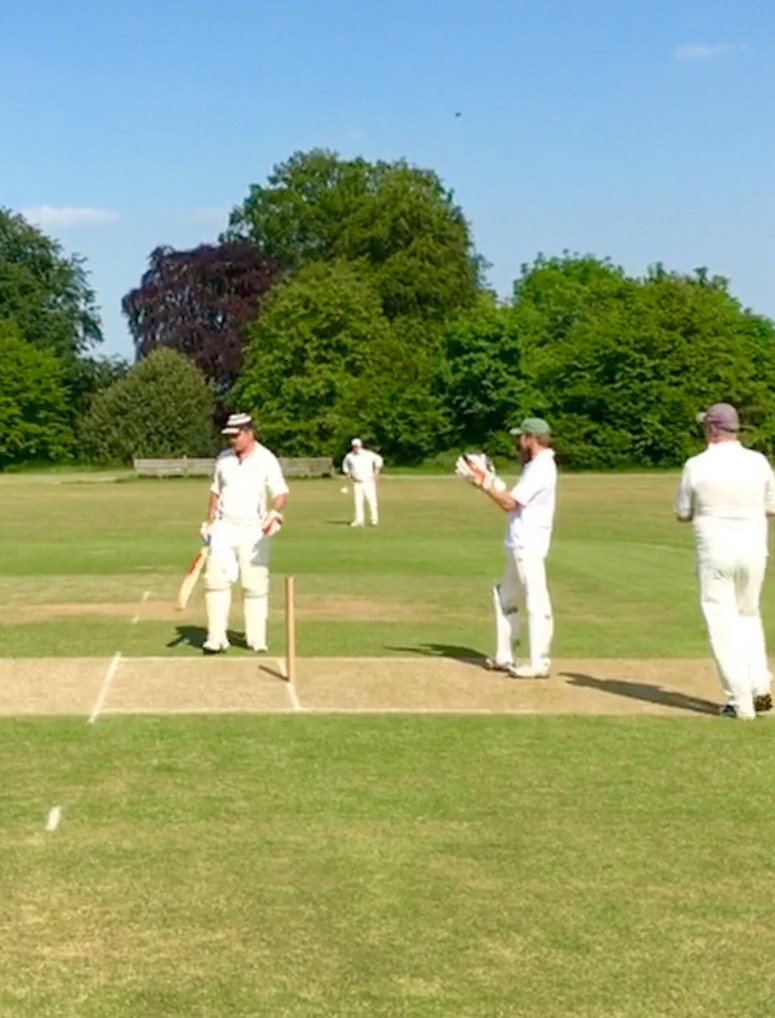 Yesterday, he went one, or rather two, better. He took his first ever wicket, and then another wicket. For the second, he was helped by one of our fielders taking his second brilliant catch of the afternoon. The champagne moment went to the first wicket, mostly because it was the first in Stuart’s life and partly because it was clean bowled. Who wouldn’t want to be in a club that can change around the cricketing life of a novice called Stuart Batts? The joy of the whole team outweighed our disappointment at the drawn game. All our players rushed to congratulate the wicket-taker. That fizzing delivery enabled everyone to say, of Stuart Batts, ‘Stuart bowls!’.
